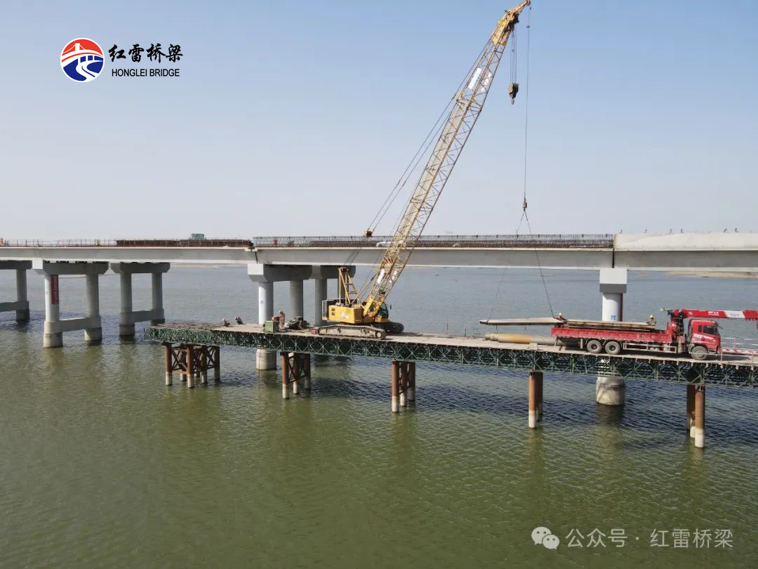 沙河特大桥全长2022米,共51跨,是汝方项目全线控制性工程。经过一年多的施工,焦唐高速汝州至方城段项目沙河特大桥顺利实现合拢,也标志着红雷桥梁搭设的钢便桥已然完成使命。